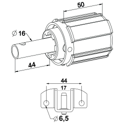 Embout d'axe pour tube ZF 54 diamètre 16 mm avec coussinet.