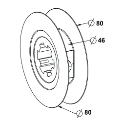 Poulie crabot diamètre 80 mm pour sangle de largeur maxi 15 mm.