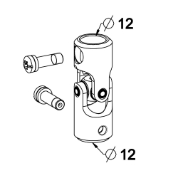 Cette genouillère Ø12 mm / Ø12 mm assure la liaison entre la sortie de caisson et la manivelle.