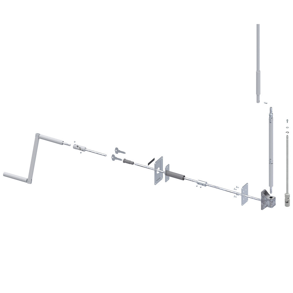 - 1 tige H7 longueur = 580 mm + 1 genouillère pour liaison barillet/manivelle à travers le mur