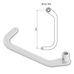 Bras W2 permettant l'utilisation d'une motorisation en linteau pour une profondeur minimale de 100 mm.