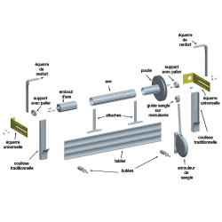 Equerres réversibles pouvant être réglées en profondeur selon le diamètre d'enroulement.